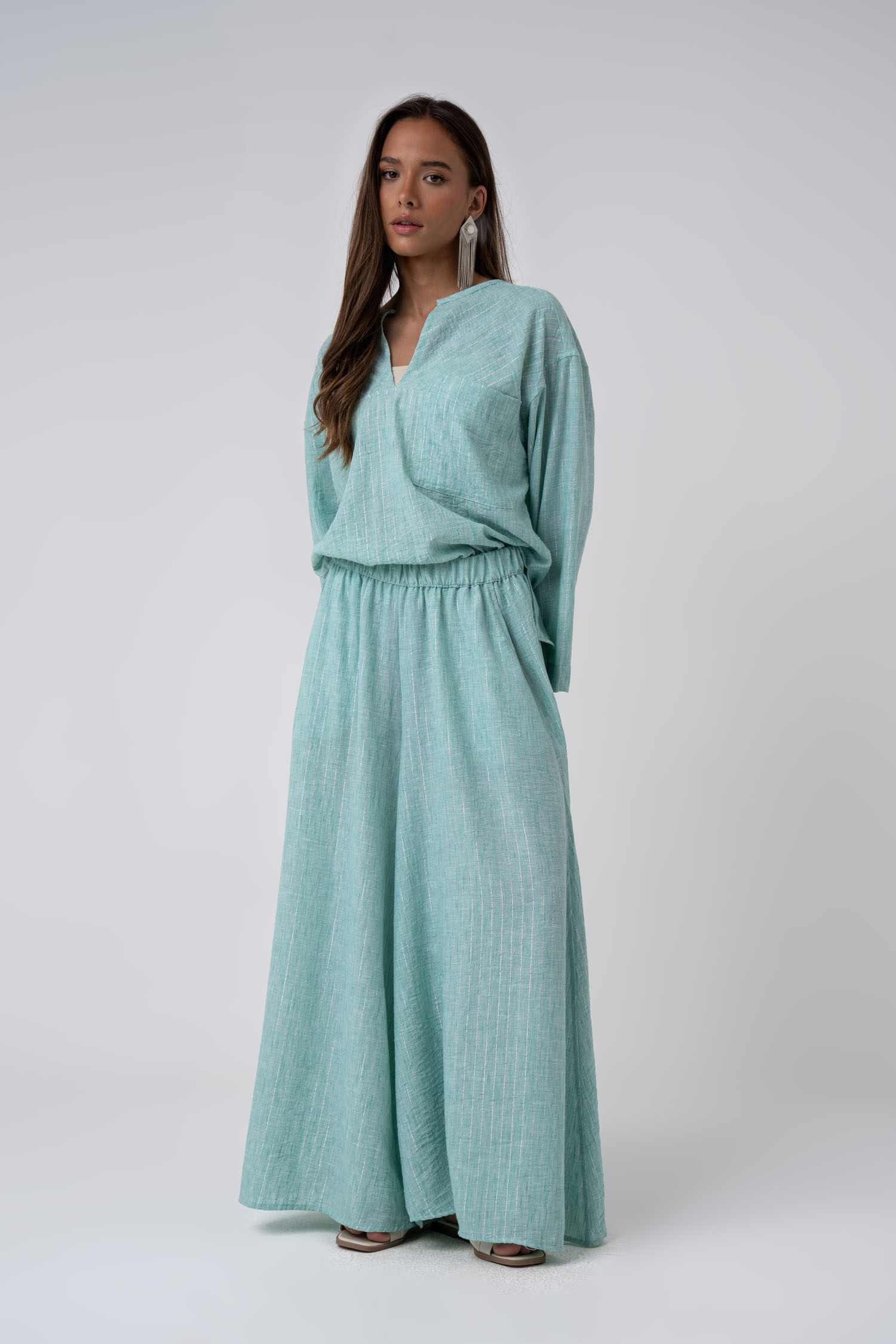 Be the first to review “Silver-striped flowy pants”