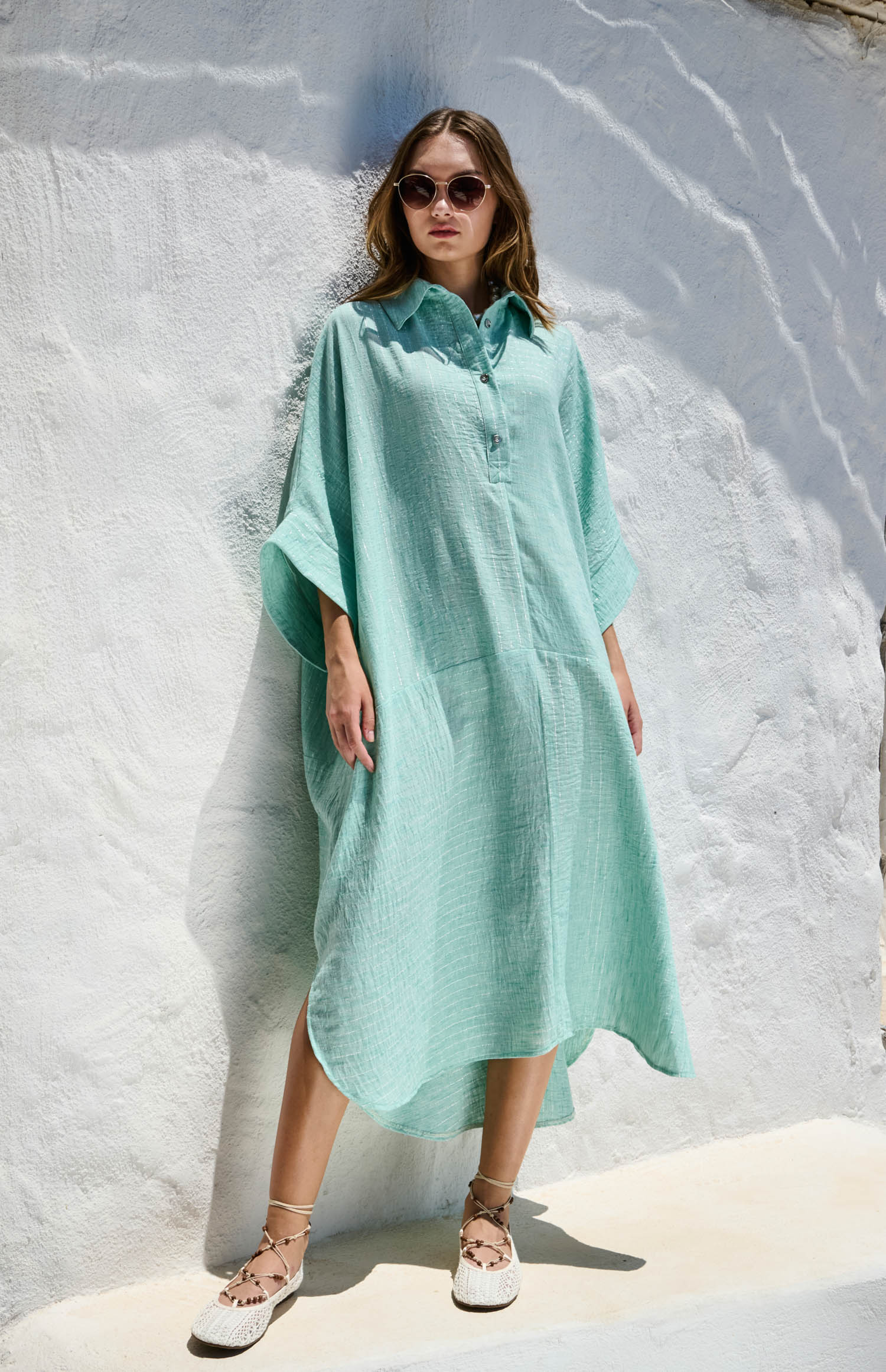 Silver-striped flowy linen dress